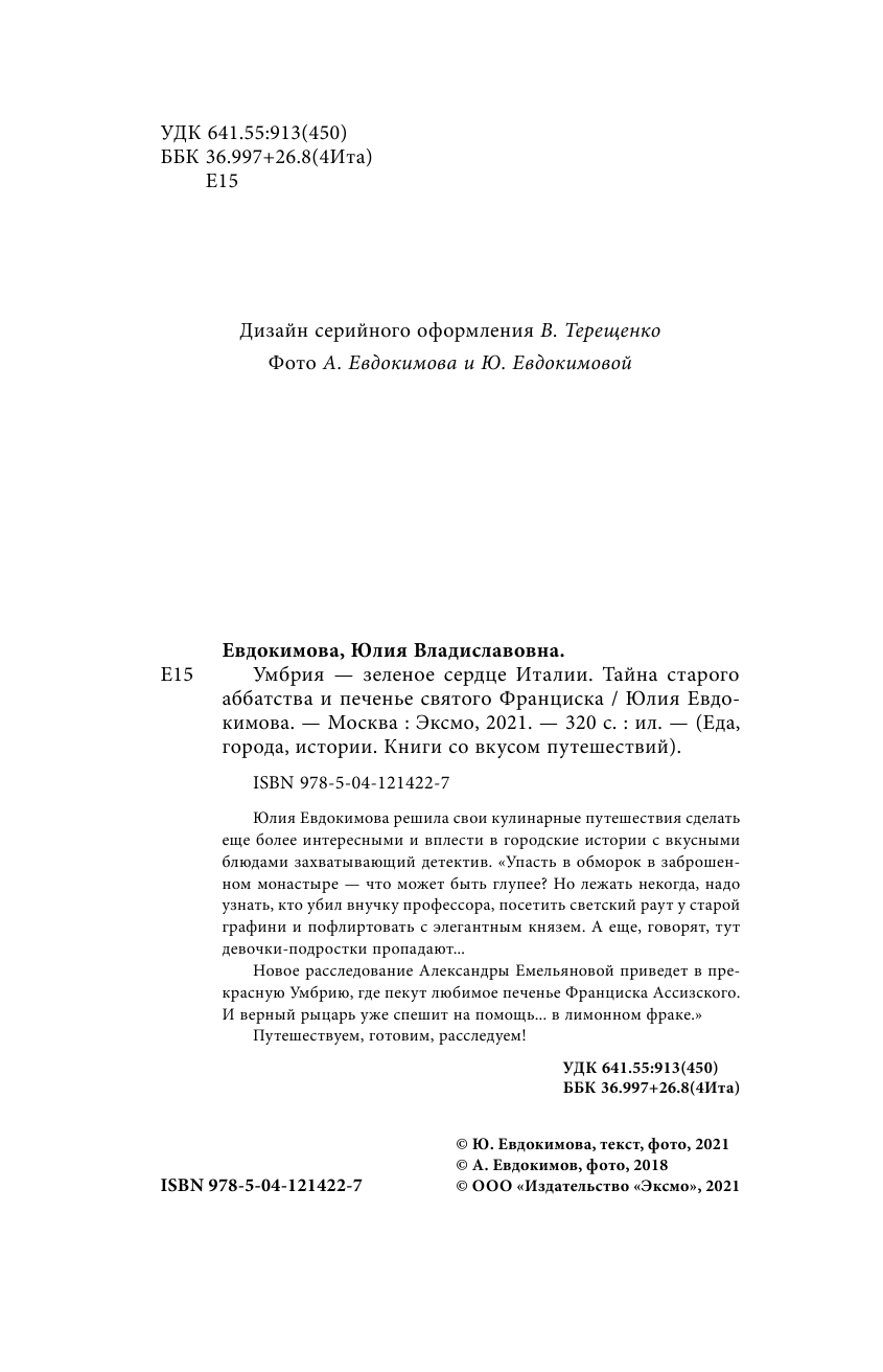 Умбрия - зеленое сердце Италии. Тайна старого аббатства и печенье святого Франциска (Евдокимова Юлия Владиславовна); ООО "Издательство "Эксмо", 2021