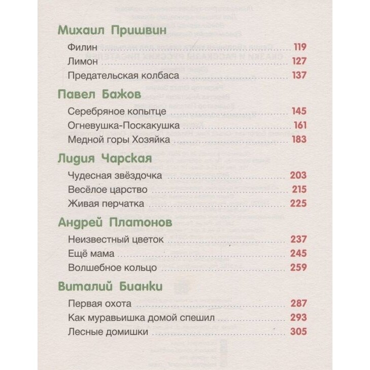 | Автор | Ушинский Константин Дмитриевич; Толстой Алексей Николаевич; Мамин-Сибиряк Дмитрий Наркисович; Толстой Лев Николаевич; Пришвин Михаил Михайлович; Бажов Павел Петрович; Чарская Лидия Алексеевна; Платонов Андрей Платонович; Бианки Виталий Валентинович |
