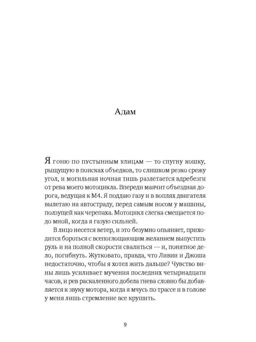 Сказать правду или промолчать? Адам и Ливия столкнулись, наверное, с самым страшным воплощением этой дилеммы. Они готовятся к масштабному празднику в честь сорокалетия Ливии, смеются и обсуждают закуски. Но очень трудно сохранять лицо, когда внутри – заполненная ужасом черная дыра. Снова и снова они врут друг другу, чтобы оттянуть тот миг, когда жизнь изменится навсегда. Ливия скрывает от Адама жуткую тайну их обожаемой дочери Марни, которая учится в другой стране. Адам не говорит, что решил сделать любимой сюрприз и купил Марни билеты домой, но час назад на свою голову посмотрел выпуск новостей…