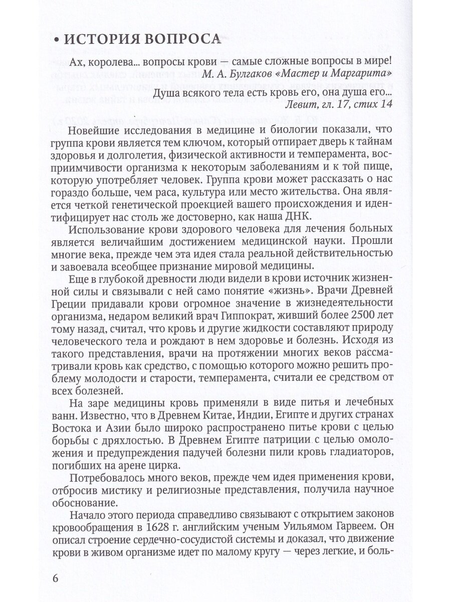 Новейшие исследования в медицине и биологии показали, что группа крови является тем ключом, который открывает дверь к тайнам здоровья и долголетия, физической активности и темперамента, восприимчивости организма к некоторым заболеваниям и к той пище, которую употребляет человек. Группа крови может рассказать о нас гораздо больше, чем раса, культура или место жительства. Она является четкой генетической проекцией вашего происхождения и идентифицирует нас столь же достоверно, как ваша ДНК.