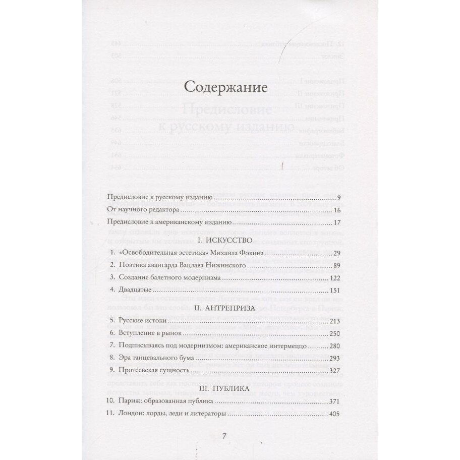 "История балета ХХ века не знала труппы, которая оставила бы в ней столь же глубокий и влиятельный след, как Русский балет Дягилева. Он просуществовал всего двадцать лет - с 1909 по 1929 год, - но за эти два десятилетия успел превратить балет в живое, современное искусство… На протяжении всего своего существования эта труппа была центром притяжения ярких, талантливых, исключительных личностей. Но одна фигура возвышалась над всеми остальными - Сергей Дягилев, выдающийся импресарио, руководивший Русским балетом с первых дней его возникновения до самой своей смерти в 1929 году. Это был человек железной воли и чрезвычайно тонкого вкуса, обладавший энциклопедическими знаниями и страстной любознательностью, - своеобразный Наполеон от искусств - и вместе с этим личность масштабов эпохи Возрождения".