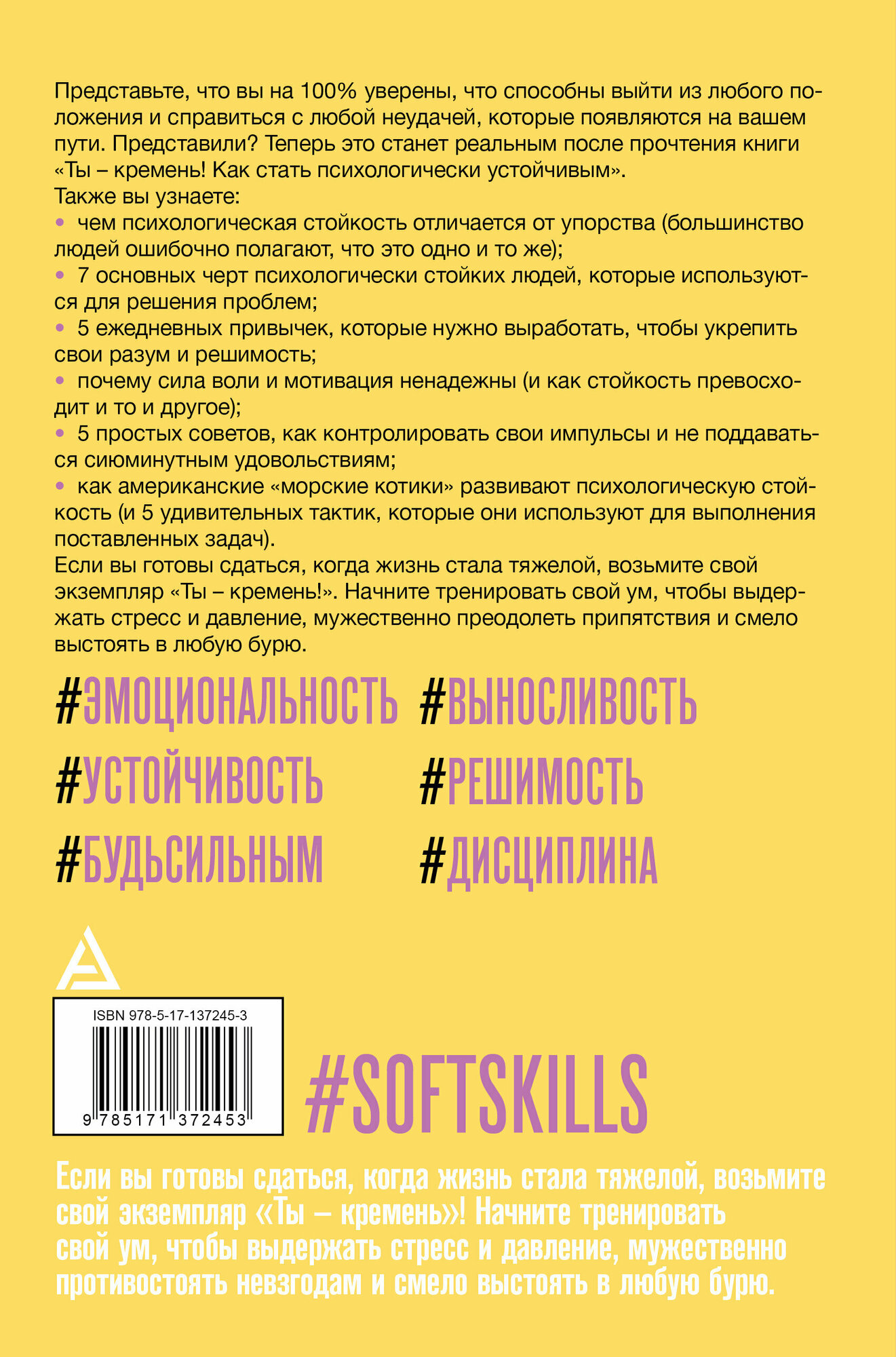 Если вы готовы сдаться, когда жизнь стала тяжелой, возьмите свой экземпляр "Ты - кремень!". Начните тренировать свой ум, чтобы выдержать стресс и давление, мужественно преодолеть трудности и смело выстоять в любую бурю.