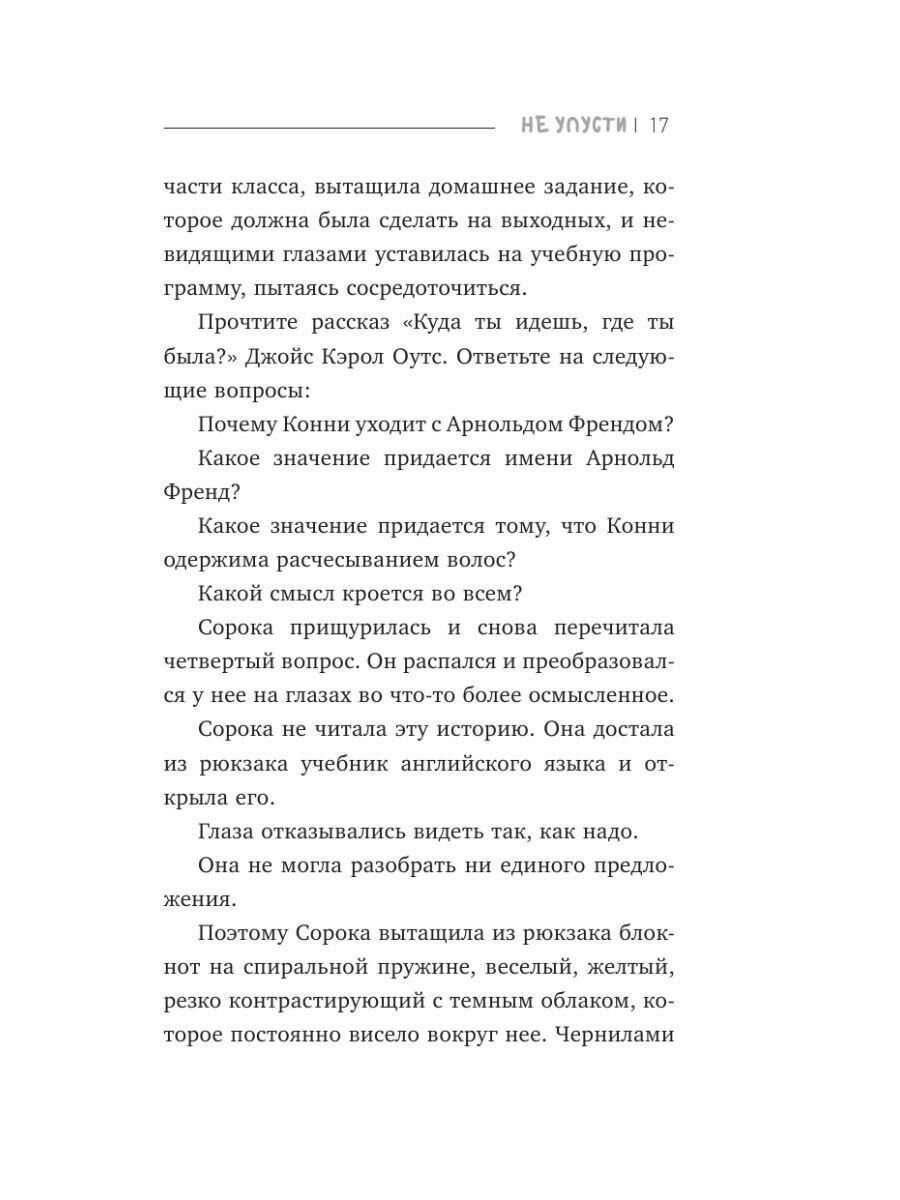 «Не упусти» - это захватывающая, жутковатая маленькая книжка, о которой я все еще думаю спустя недели после того, как закончил ее. Героиню Маргарет нельзя назвать приятным персонажем, но она неотразима. Сила ее ярости создает совершенно другой мир. Ее ярость ощутима, достаточно велика, чтобы создать что-то волшебное и одновременно ужасающее. Мне показалось, что данное произведение в некотором смысле трудно читать. Тут будут моменты, когда вы будете съеживаться, беситься и испытывать такие сильные чувства к героине.