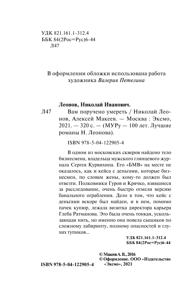 Книга: Вам поручено умереть (Леонов Николай Иванович, Макеев Алексей Викторович); ООО "Издательство "Эксмо", 2021