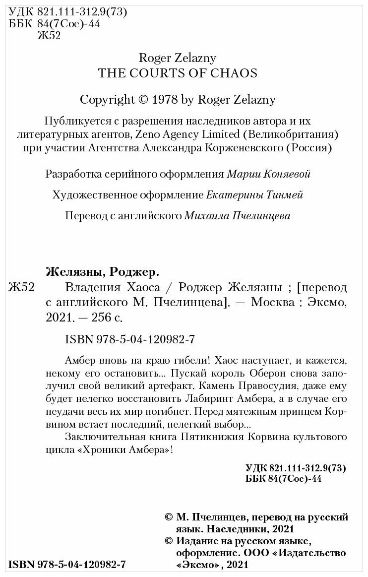 Книга: Владения Хаоса (Роджер Желязны); Эксмо, Редакция 1, 2021