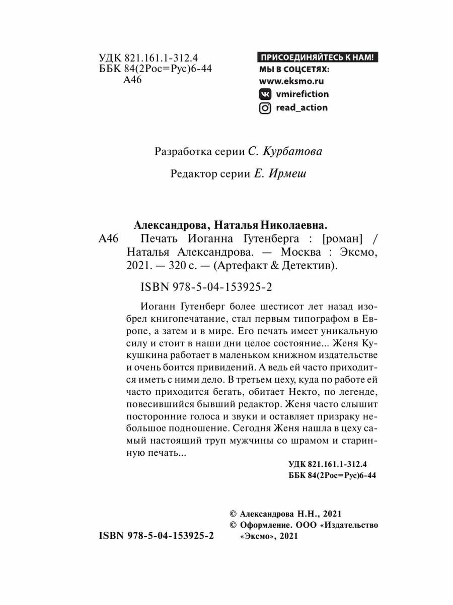 Печать Иоганна Гутенберга (Александрова Наталья Николаевна); ООО "Издательство "Эксмо", 2021
