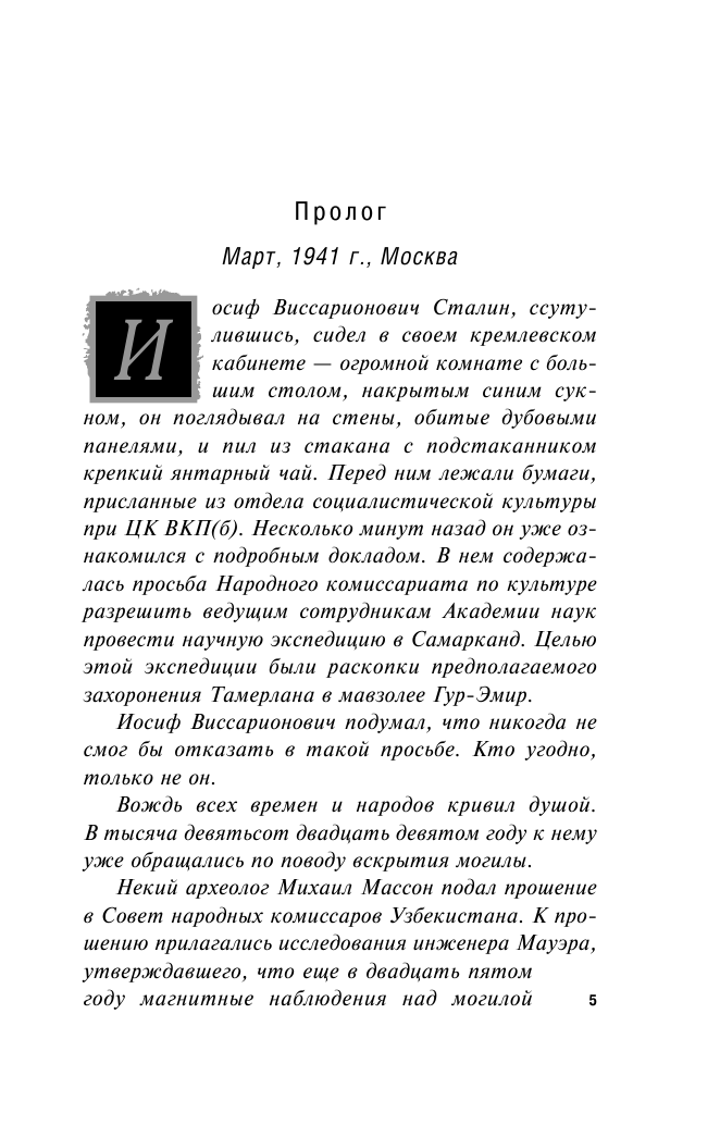 Утаившая жемчужину участница раскопок стала очередной «жертвой» проклятия. Интересно, что описанное в романе расследование ее убийства является реальной историей. В 80 е годы советскими криминалистами было раскрыто дело о похищенной жемчужине Тамерлана. Следствие, с кажущейся на первый взгляд очевидной развязкой, на деле оборачивается запутанным и непредсказуемым.