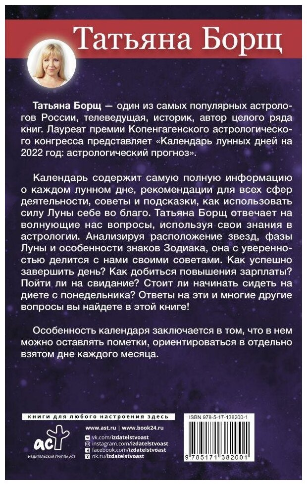 Календарь лунных дней на 2022 год: астрологический прогноз (Татьяна Борщ); Издательство АСТ, 2021