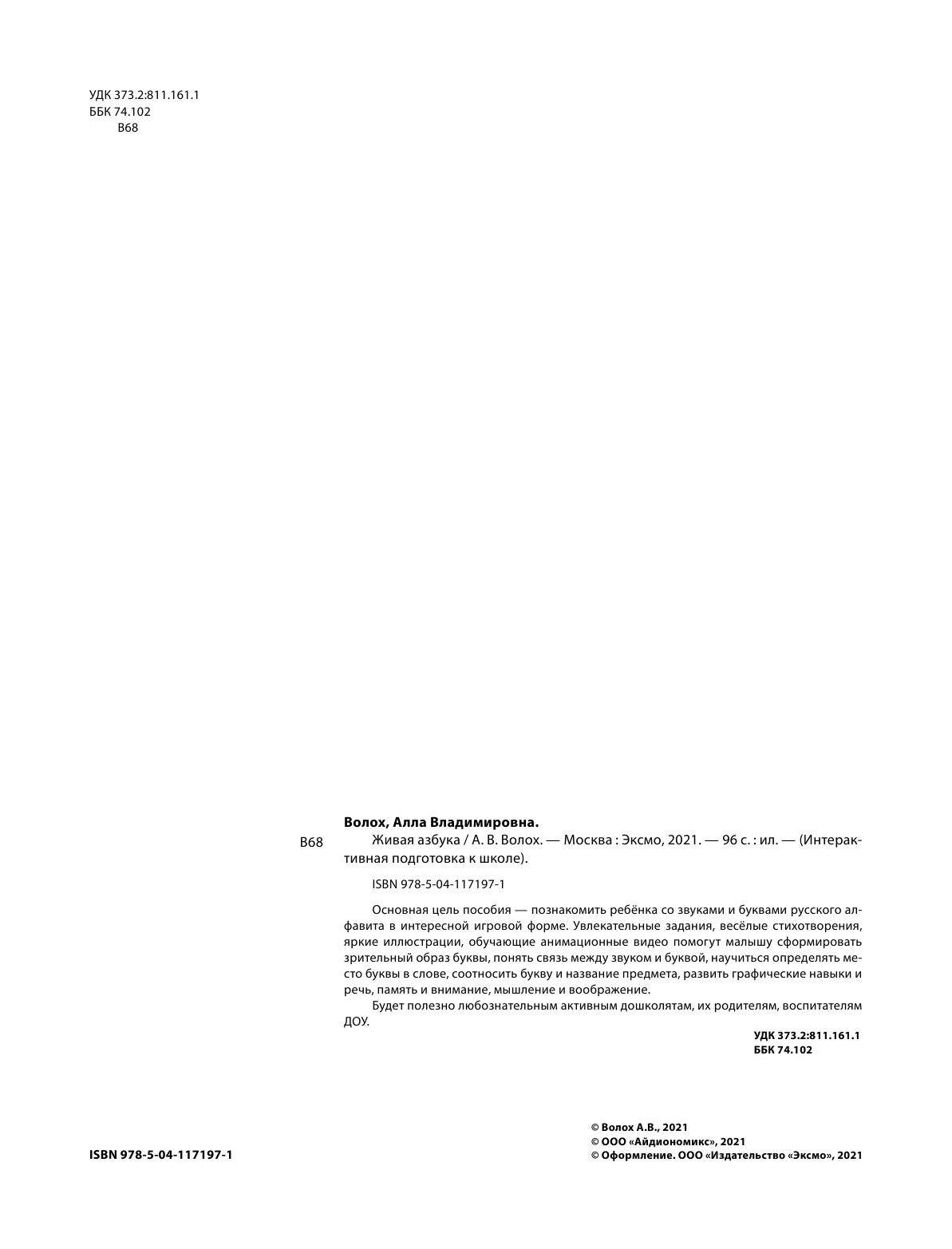 Книга: Живая азбука (Волох Алла Владимировна); ООО "Издательство "Эксмо", 2021