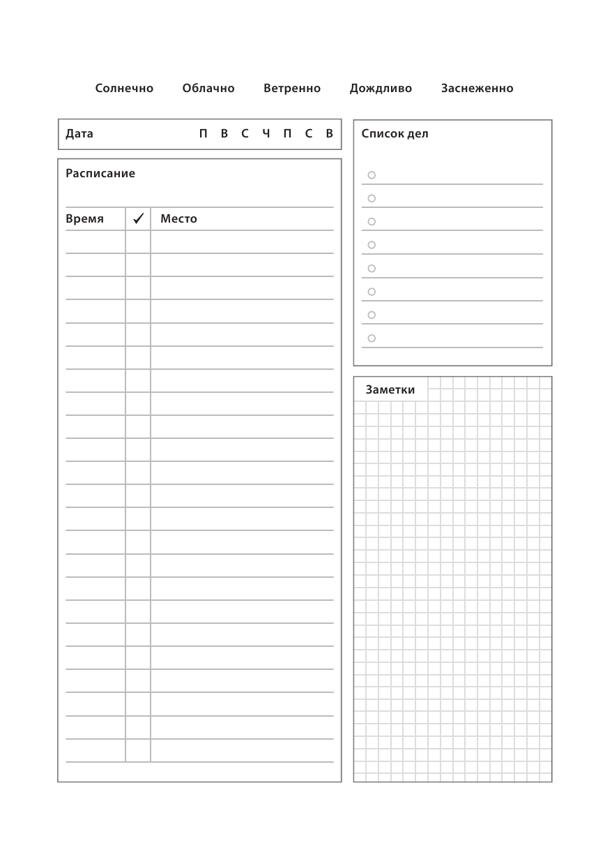 -Сетка блока создана с учетом современных тенденций европейского дизайна: часть распределена по времени — для ваших рабочих дедлайнов, а другая часть — линейки, которые можно использовать как для личных заметок, так и для планирования рабочих задач.