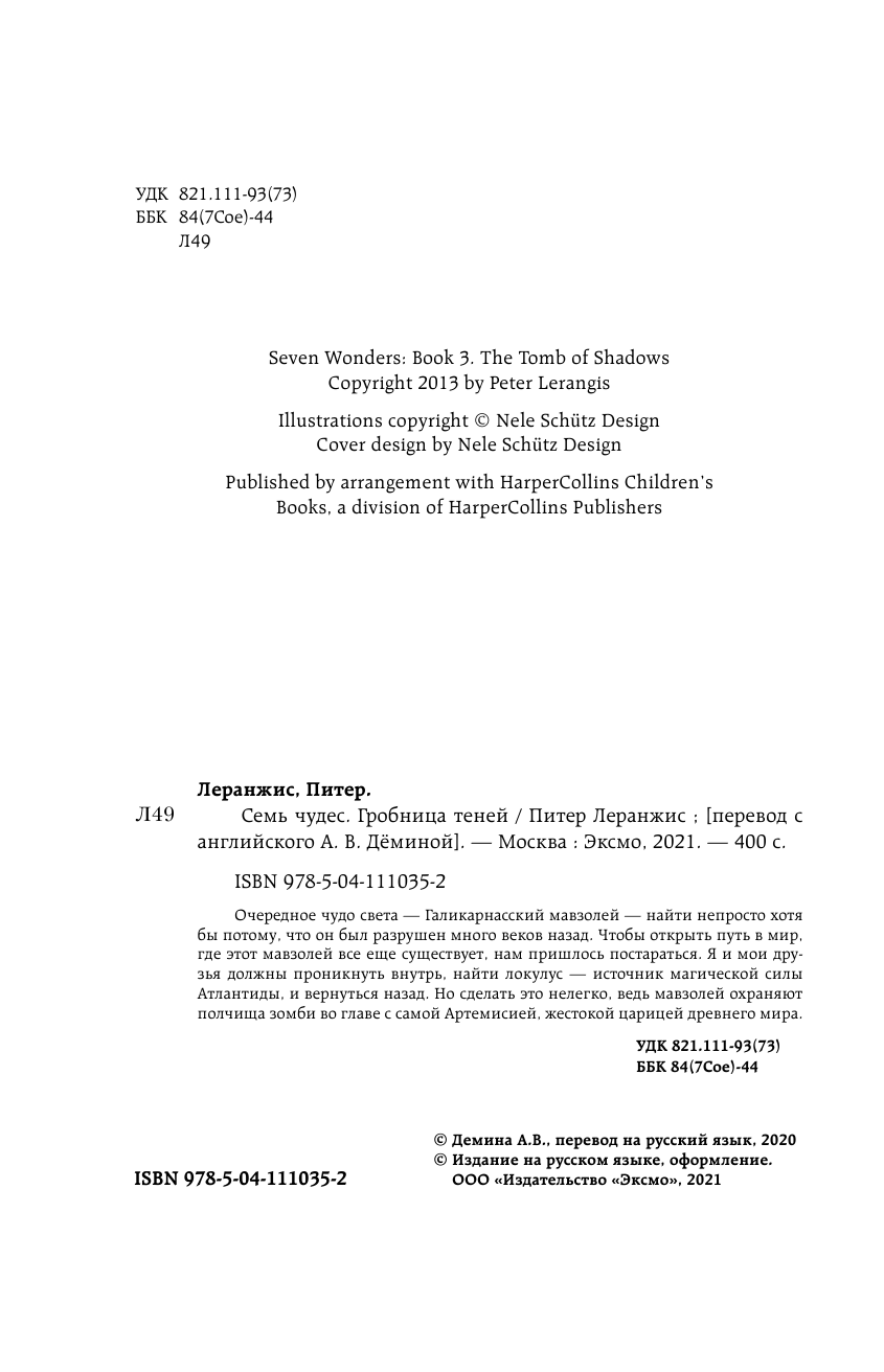 Семь чудес. Гробница теней (выпуск 3) (Леранжис Питер); ООО "Издательство "Эксмо", 2021
