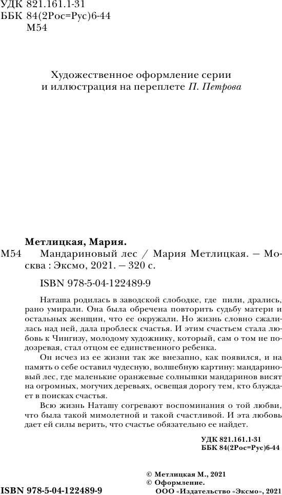 Книга: Мандариновый лес (Метлицкая Мария Робертовна); ООО "Издательство "Эксмо", 2021