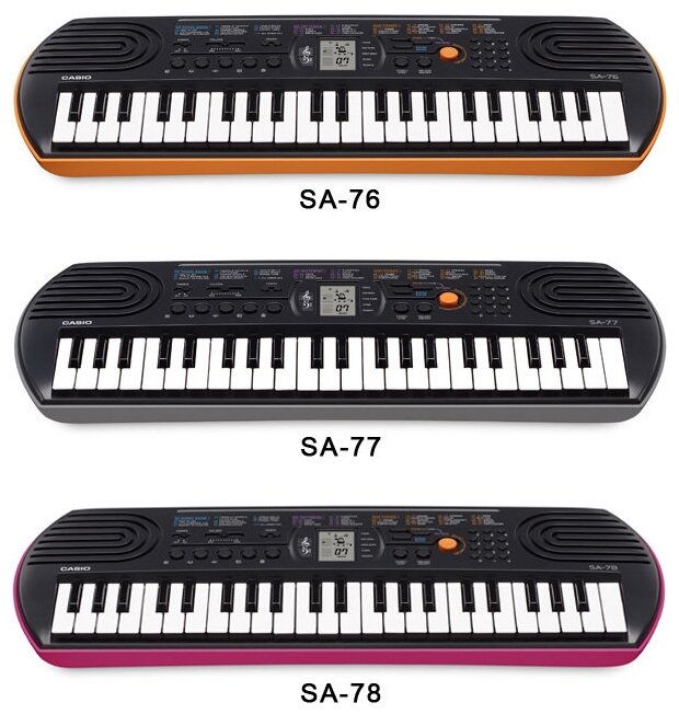 SA-76 с 44 клавишами предлагает всем начинающим уникальные музыкальные возможности. 100 тембров, 50 стилей, встроенные композиции для обучения, новейший звуковой процессор с серьезной для таких синтезаторов 8-ми нотной полифонией, а также LC дисплей, помогающий с первых шагов разобраться в 2-х строчной нотной грамоте – все это делает инструмент отличным помощником для начинающего музыканта