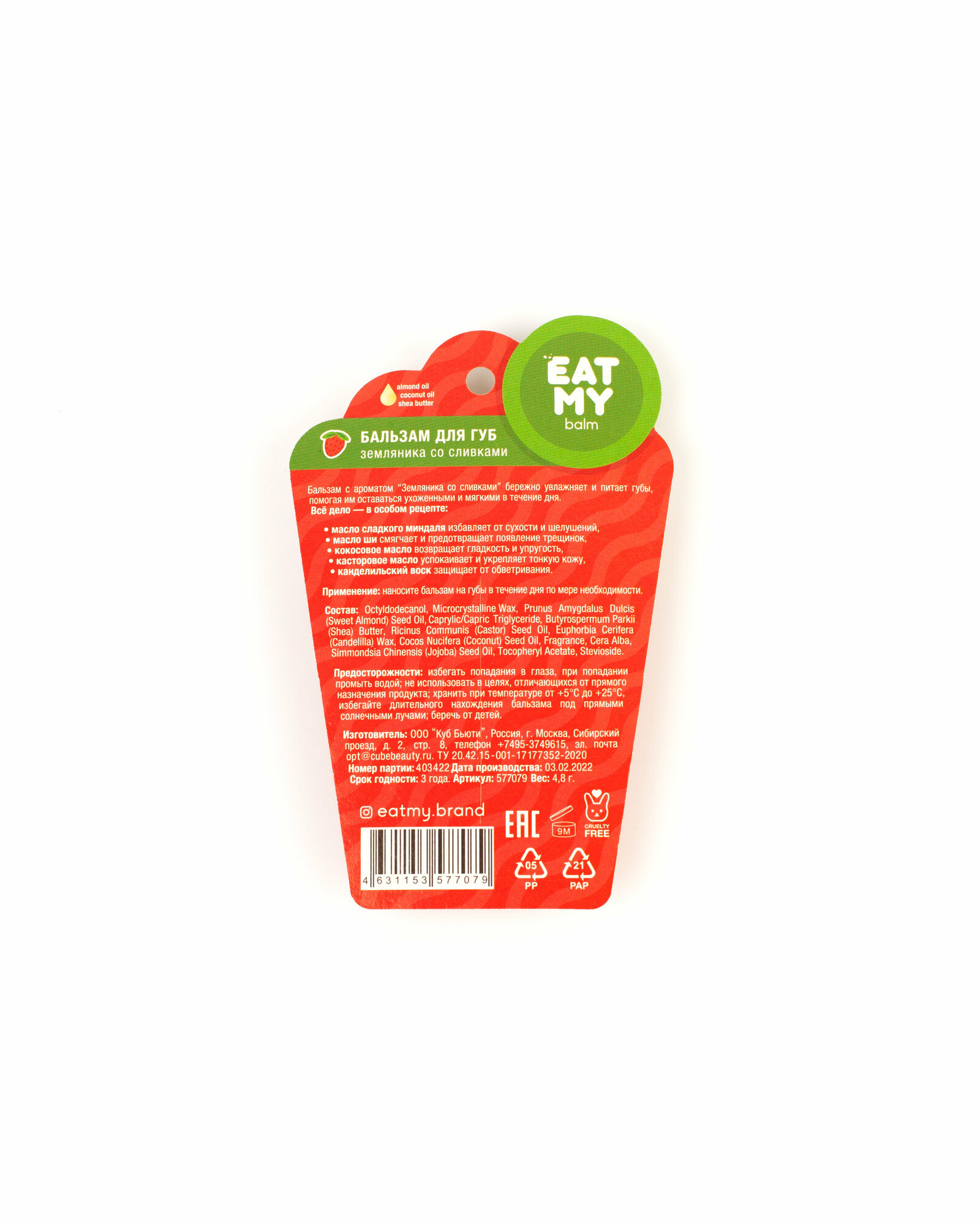 | Полное наименование | Бальзам для губ Eat My "Земляника со сливками" |