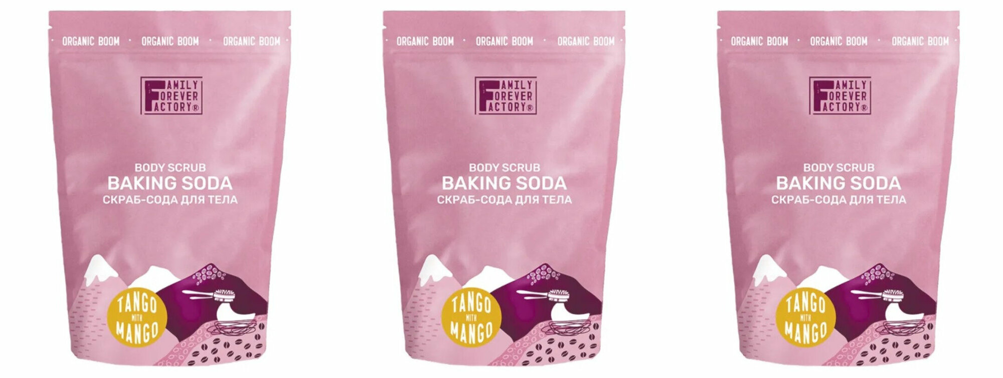 Family Forever Скраб-сода для тела "Танго с манго" 200 г. В комплекте 3 шт. Новая версия интенсивного скраба для тела с эффектом удивления!Грецкий орех, морская соль, сода обеспечивают глубокое очищение кожи и ее микромассаж.Масла миндаля и виноградной косточки питают, насыщают витаминами и микроэлементами. Аромат манго обеспечивает SPA-эффект.Способ применениянанести скраб на влажную кожу, распределить массирующими движениями 5-7 мин, смыть водой. Использовать 1-2 раза в неделю.