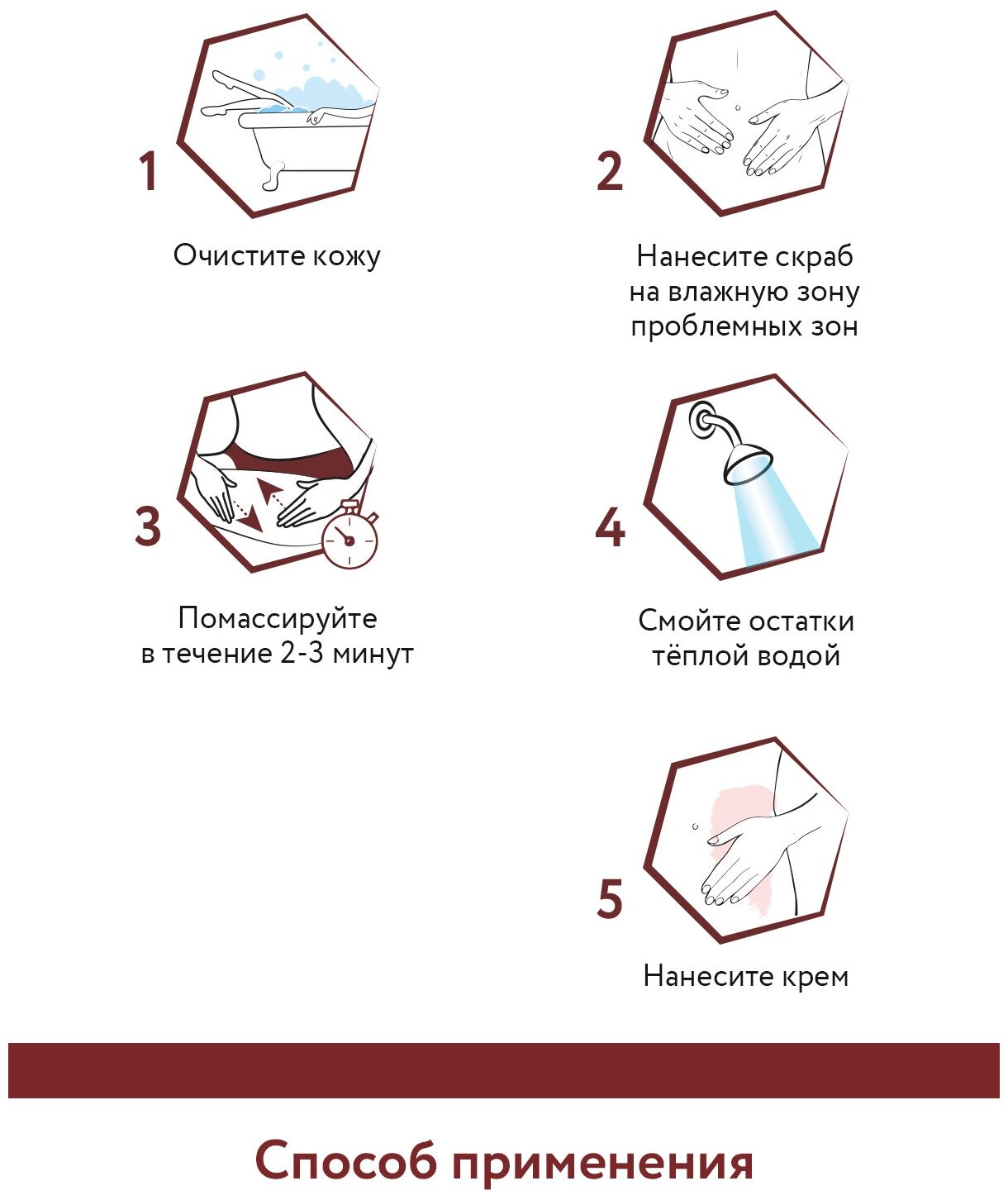 | Способ применения | На очищенную кожу нанести небольшое количество скраба тонким слоем, помассировать 5-7 минут. Остатки скраба смыть тёплой водой. |