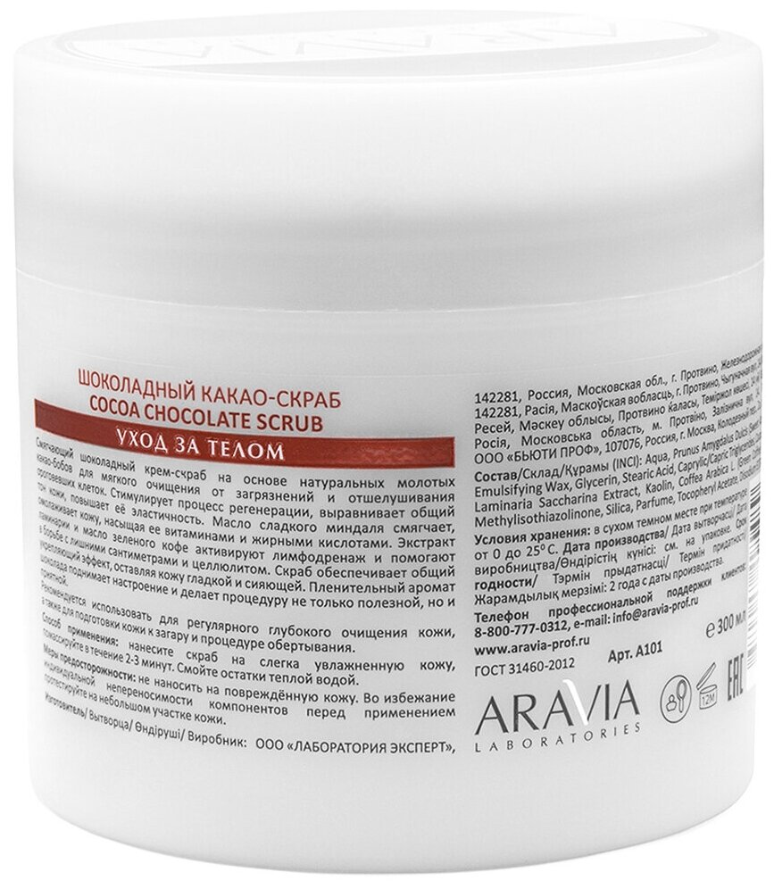 Какао-скраб шоколадный для тела Aravia Laboratories/Аравия 300мл ООО ЛАБОРАТОРИЯ ЭКСПЕРТ (1525008)