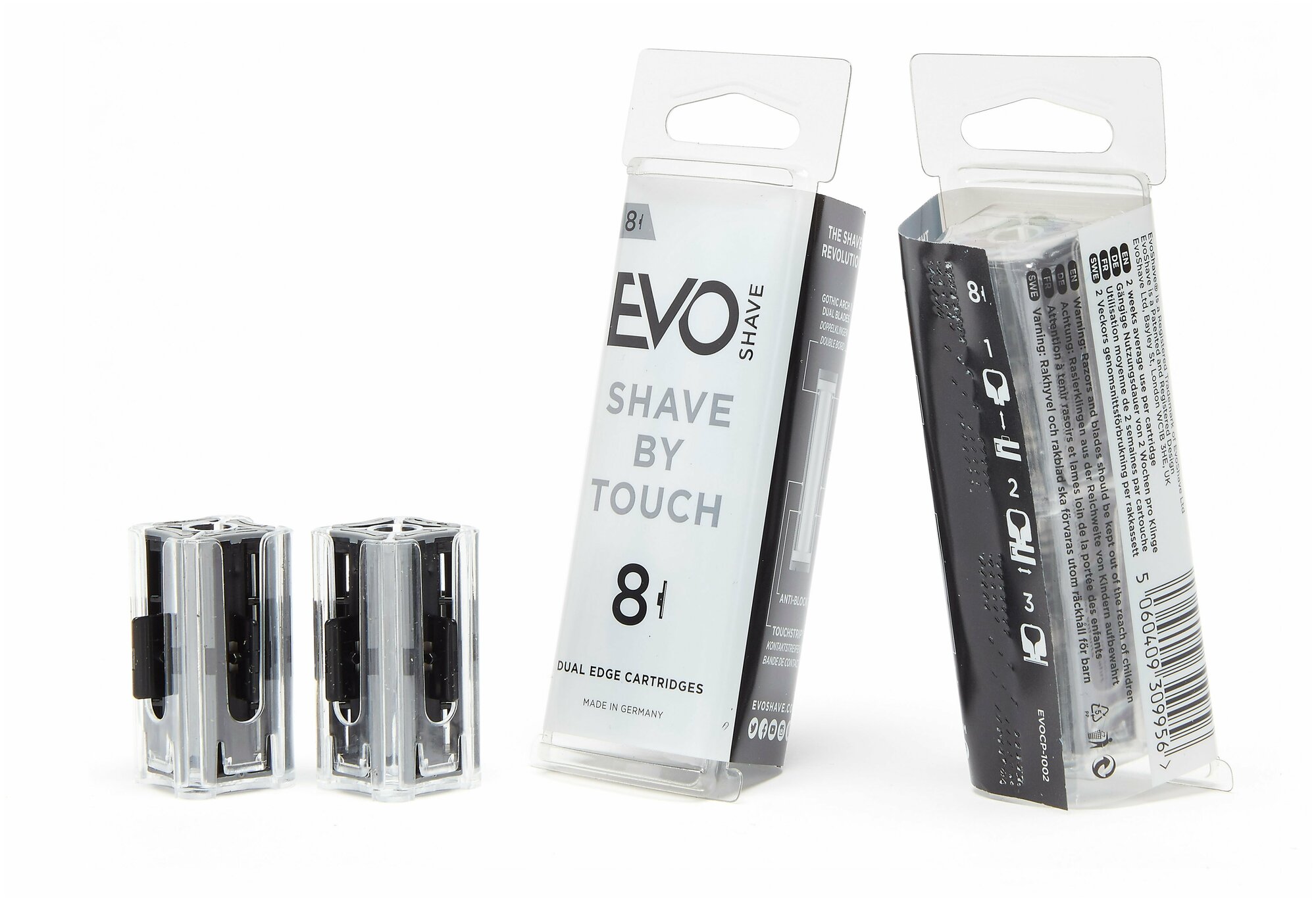 Бритвенные лезвия EvoShave сделаны из нержавеющей стали Sandvik, с твердым основанием из нитрида хрома и мягким тефлоновым наружным покрытием для ультра гладкого бритья. Инновационная конструкция SlipstreamTM, разработанная компанией для сменных кассет EvoShave, содержит большую зону сквозной очистки с гидродинамической конструкцией.