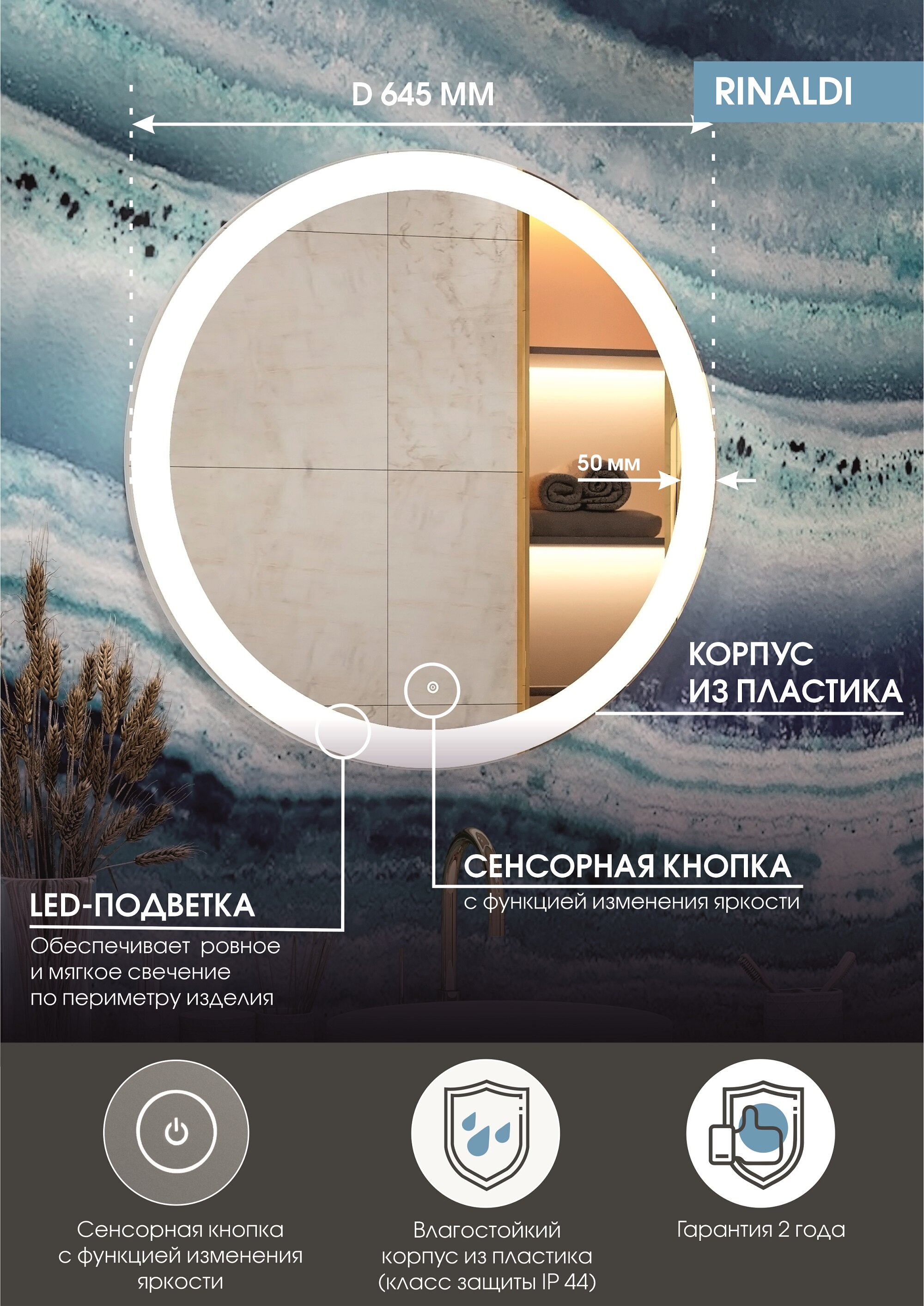 Зеркало Континент Rinaldi D 645 ЗЛП493 с подсветкой с сенсорным выключателем