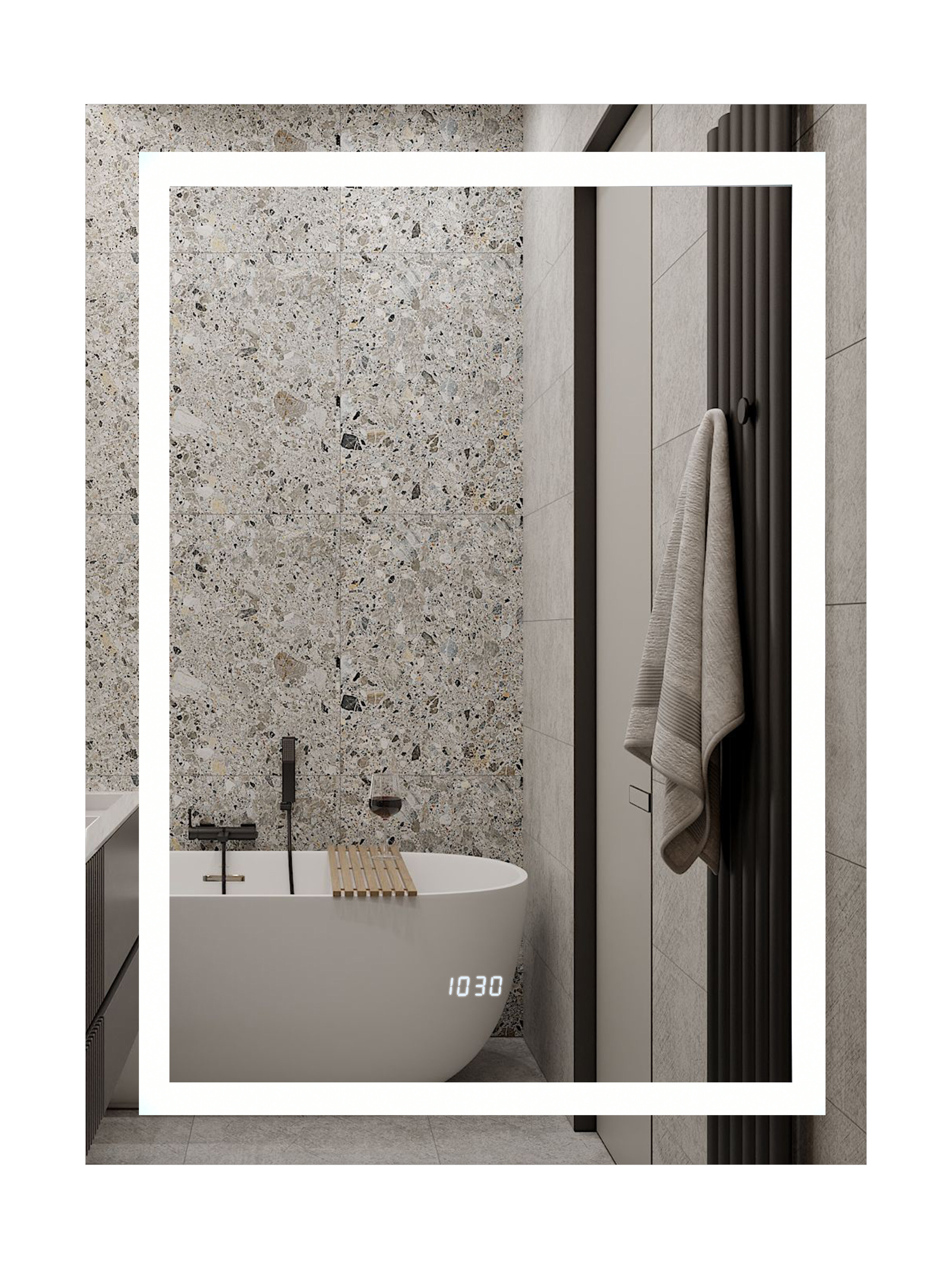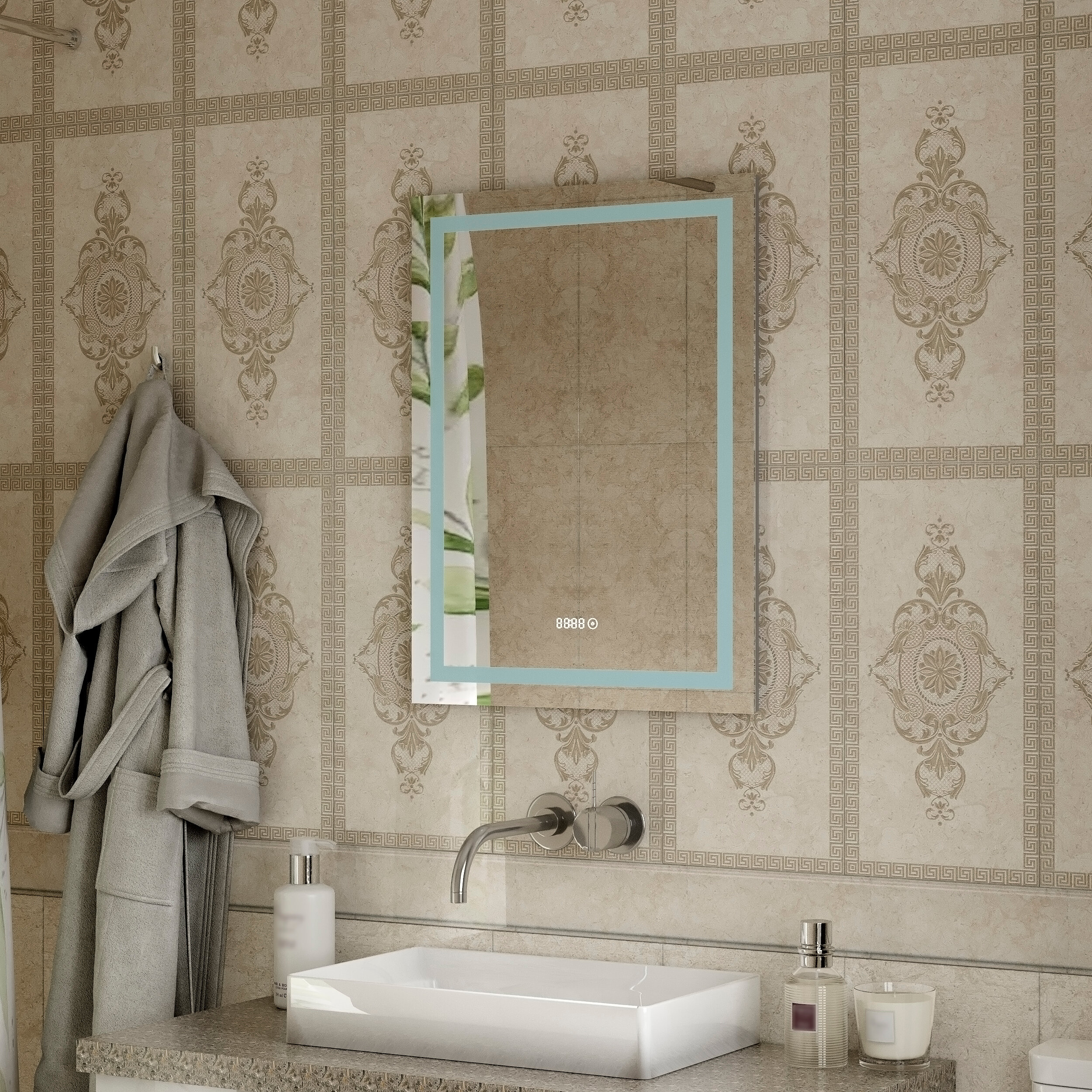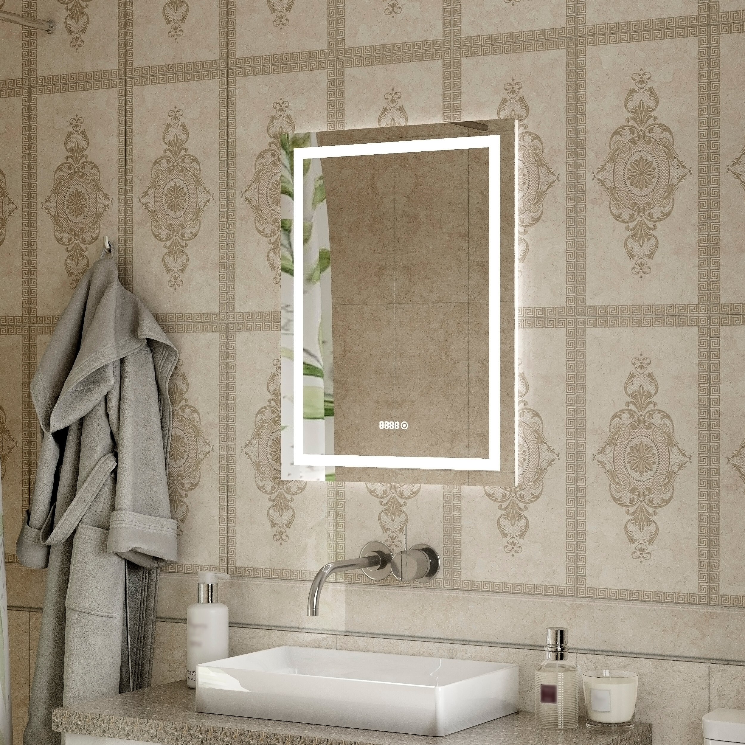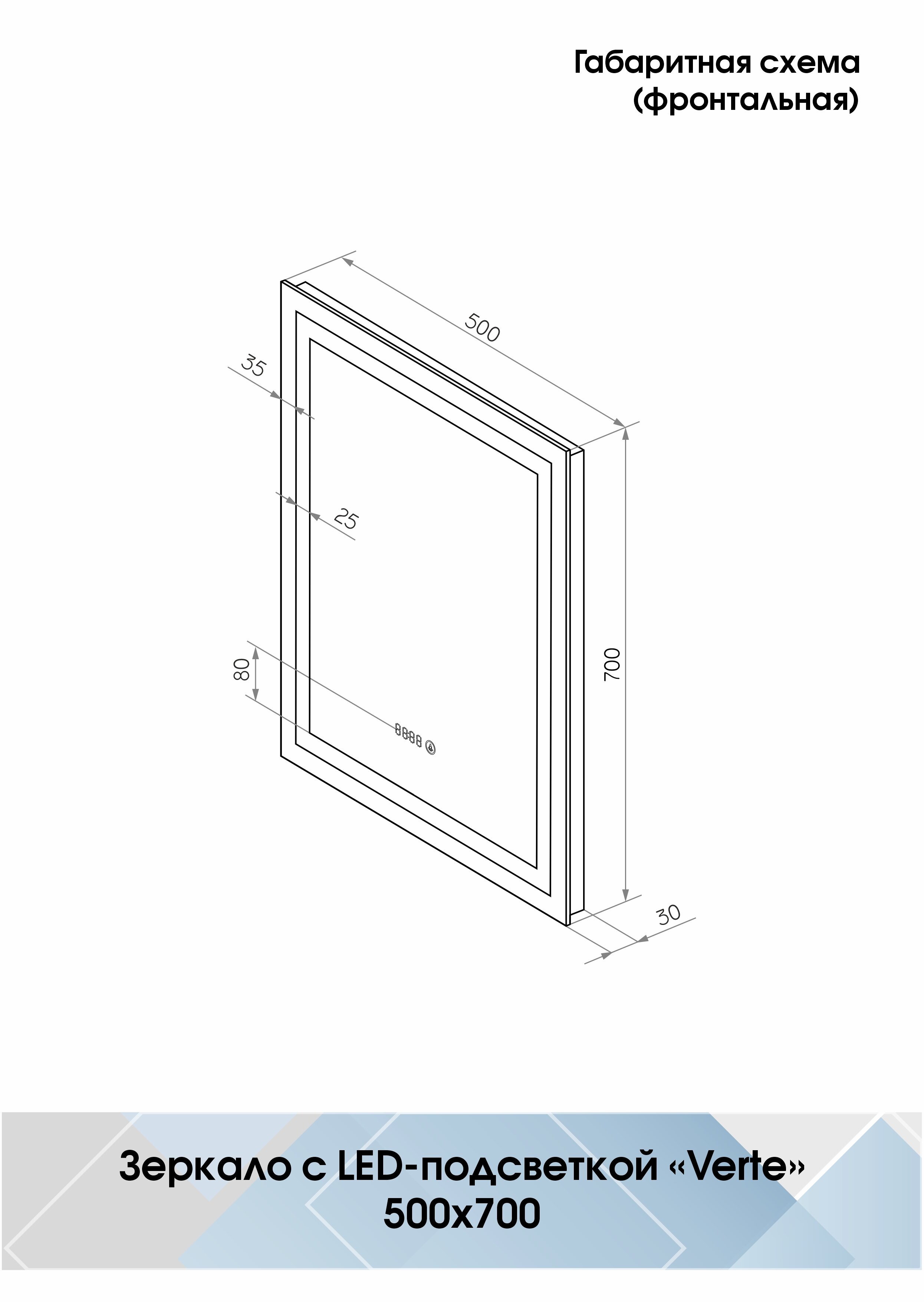 Модель: Verte 500х700 ЗЛП477 с подсветкой с часами и датчиком движения