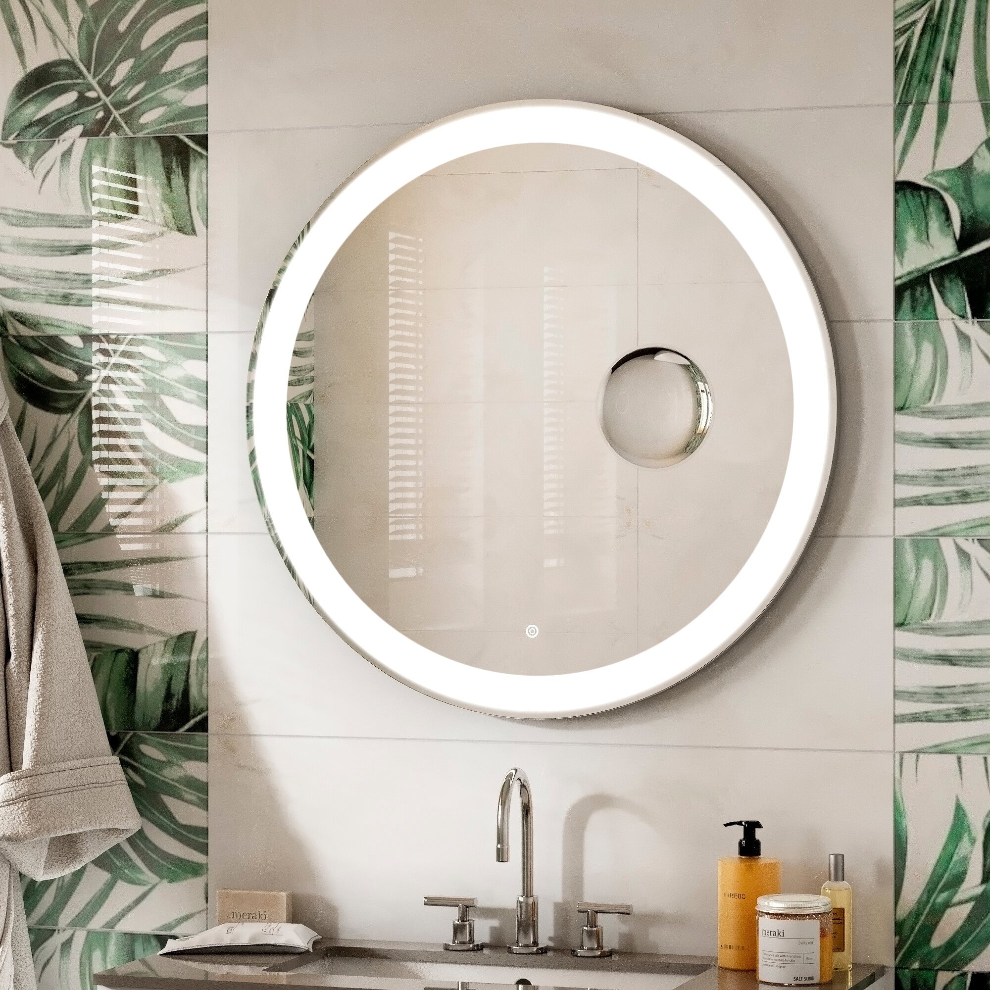 | Дополнительная информация | Зеркало для ванной комнаты с LED подсветкой, сенсорным выключателем, встроенным увеличительным зеркалом (линза) с 3-х кратным увеличением. Потребляемая мощность 27 W. Класс защиты IP44. |
