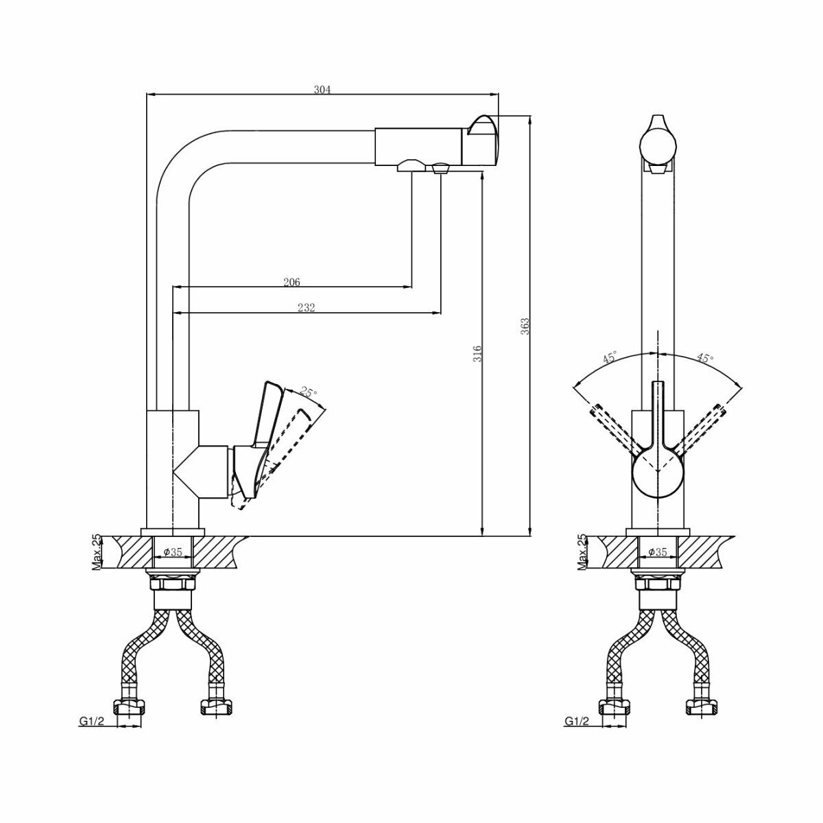 | Дополнительные функции | вращение излива, подключение фильтра |