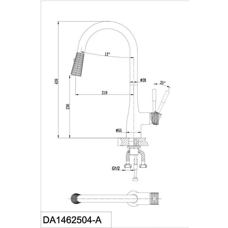 Смеситель для кухни D&K Rhein Schiller DA1462504A с выдвижным изливом. Превосходно сочетается в интерьере современного стиля благодаря надежному качеству и утонченному дизайну.