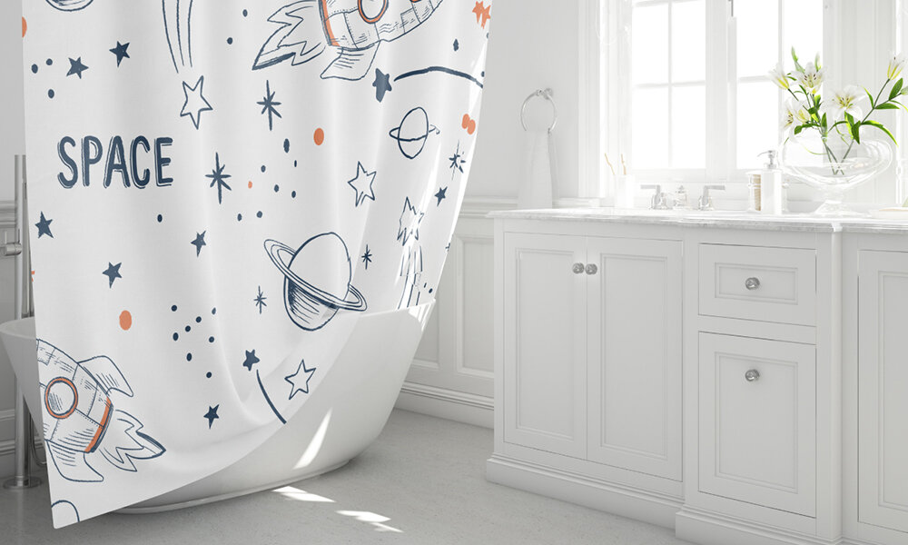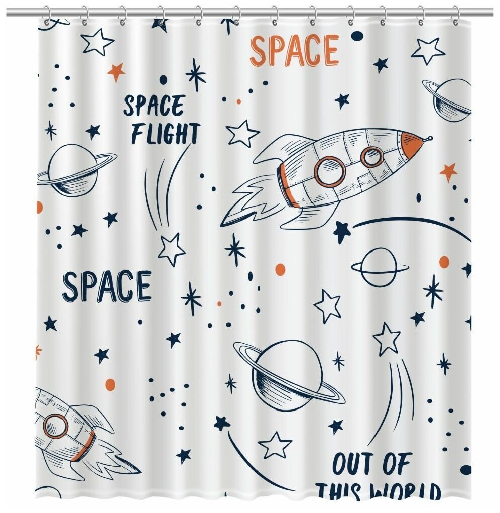 Шторка для ванны Fixsen Design Space FX-2508 180х200 Белая с узорами (размер: 180x200 см)
