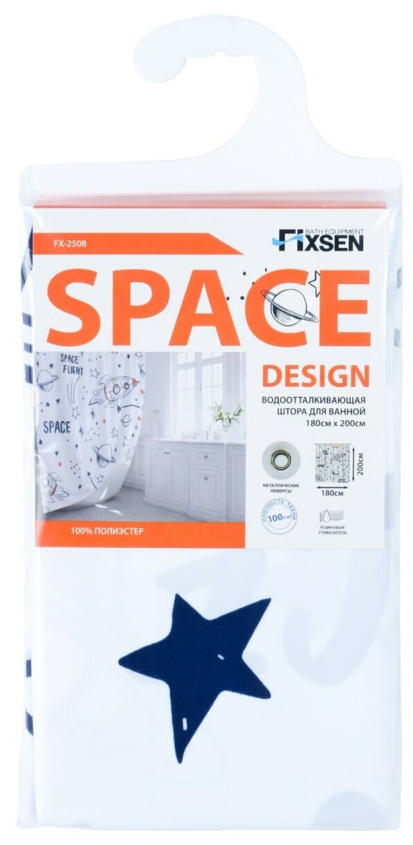 Водоотталкивающая шторка для ванны Fixsen Design Space FX-2508 180х200.
