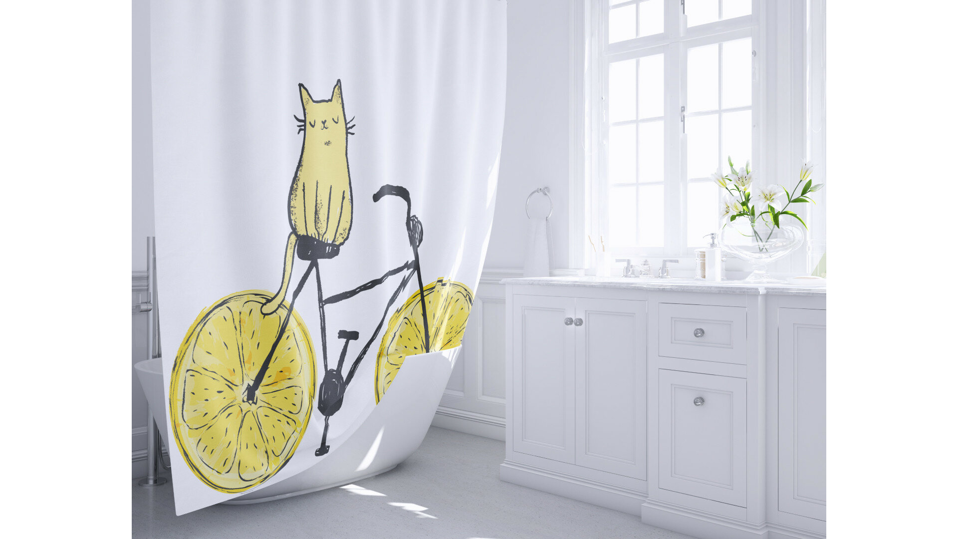 Шторка для ванны Fixsen Design Cat FX-2515 180х200 Белая Желтая