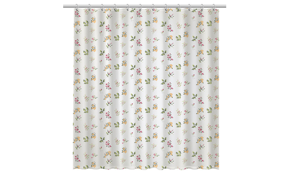 Шторка для ванны Fixsen Design Flora FX-1507 180х200 Белая с цветами (размер: 180x200 см)