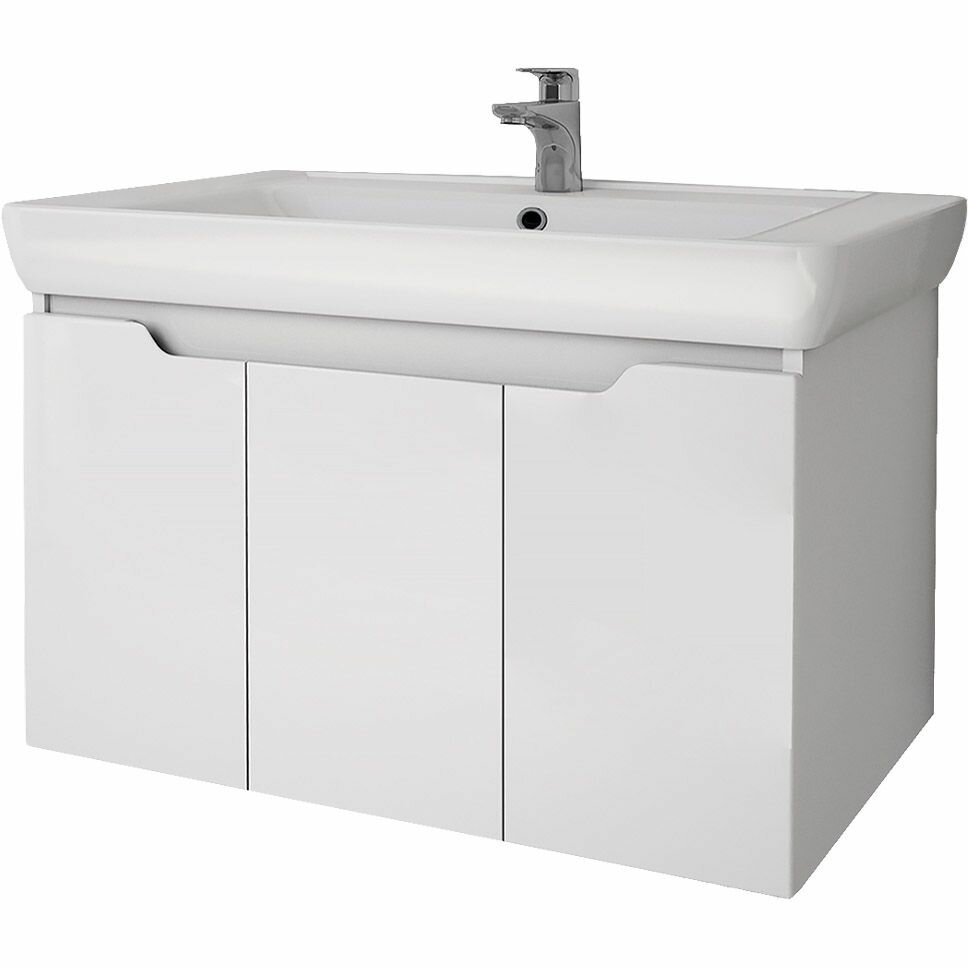 Тумба Q (D), 80 см, подвесная, 3 дверцы, белый глянец