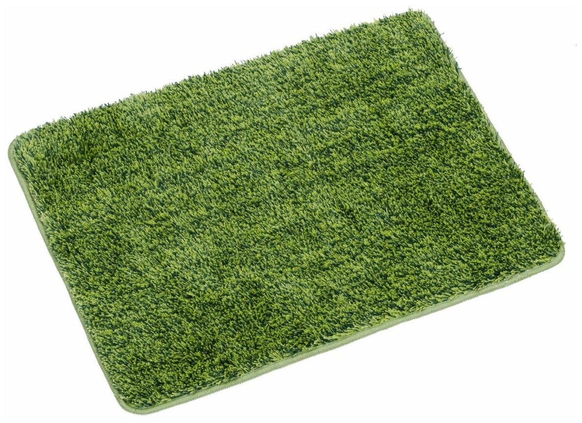 Блестящий ворс из полиэстера средней длины выглядит привлекательно, не приминается во время использования и дарит приятные тактильные ощущения. Материал не впитывает влагу, поэтому намокшая поверхность быстро высыхает. Подложка сделана из латекса.