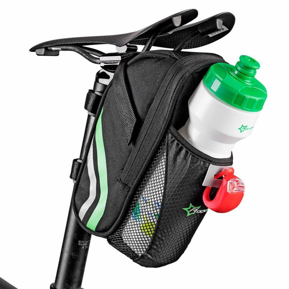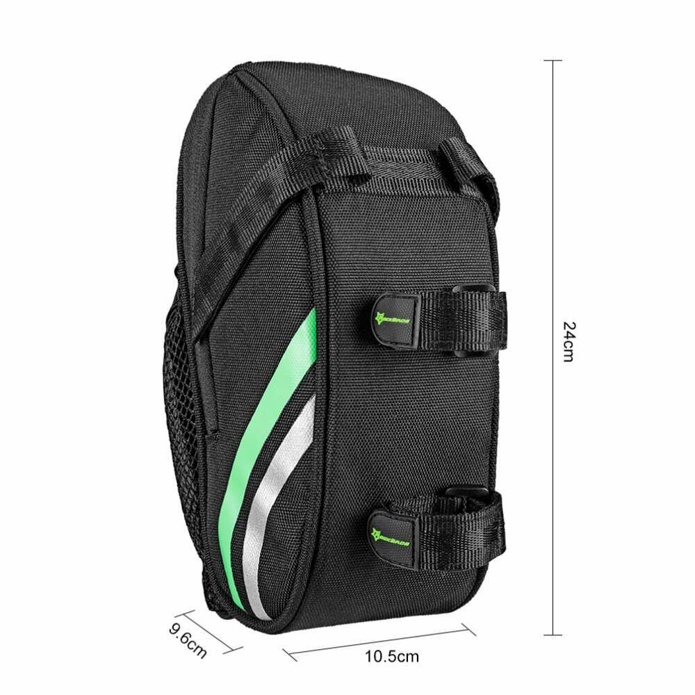 Сумка устанавливается сзади под седлом в трех точках — под само седло и на подседельный штырь.