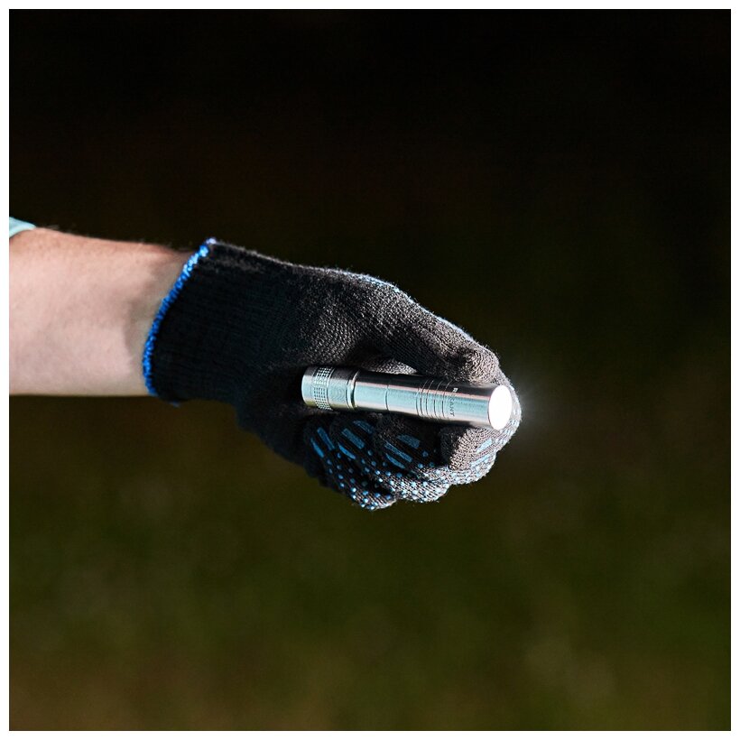 Компактный фонарь с ярким сфокусированным светом с увеличенной дальностью луча. Отлично подходит для использования на привале, на даче, а также в ремонтных мастерских. Эргономичные размеры позволяют комфортно размещать фонарь в руке. Прочный алюминиевый противоударный корпус.