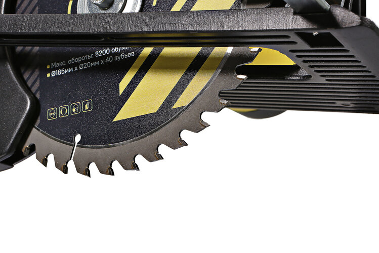 Мощная модель с оптимальным диаметром пильного диска 185 мм оснащена специальным редуктором с мелким зубом, что обеспечивает плавный ход, сниженный уровень шума и высокий КПД. При применении соответствующих дисков пила способна справиться со следующими видами материалов: блок-хаус, ламинированная и паркетная доска, брус, МДФ-панели и