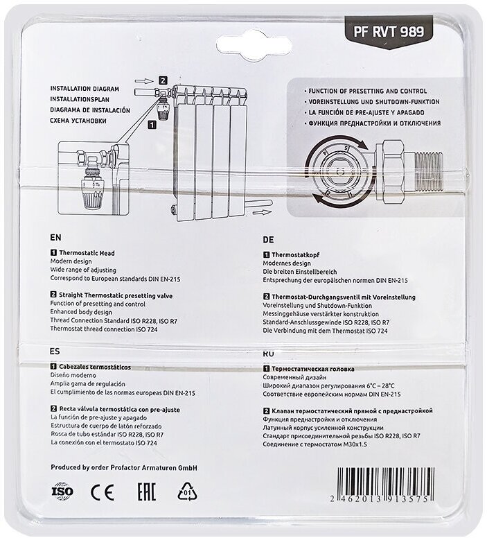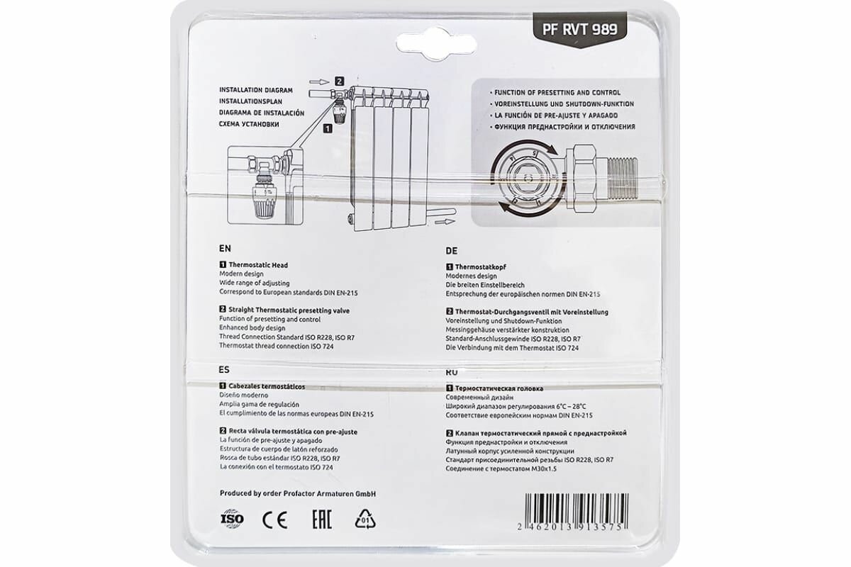- Клапан термостатический с преднастройкой прямой PF RVT 980/981
