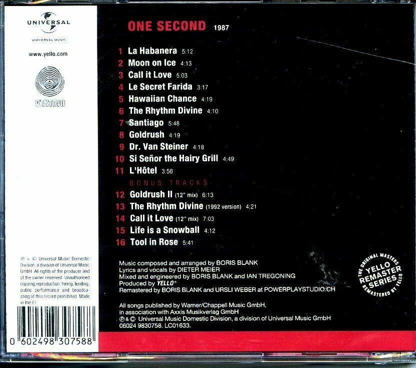 One Second - пятый студийный альбом швейцарского музыкального коллектива Yello. Ремастированное переиздание альбома 1987 года с бонус треками.