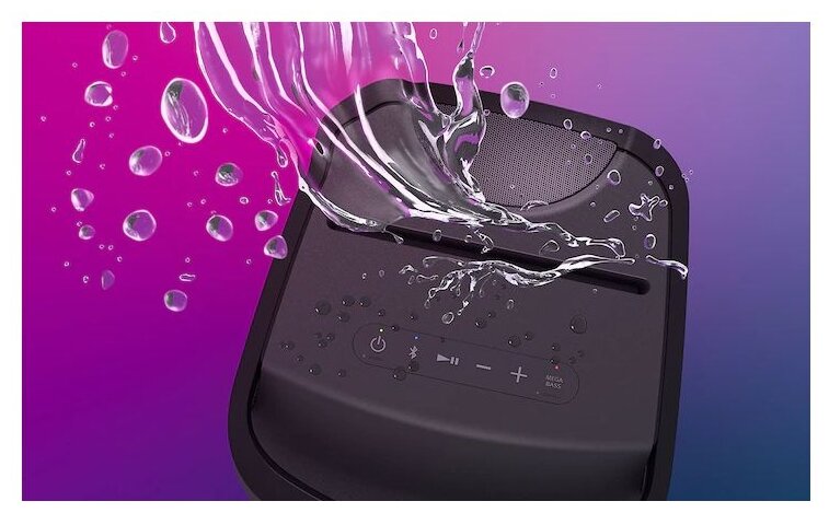 Влагозащита класса IPx4 защищает колонку от попадания брызг и пыли, что делает ее идеальным выбором для использования на улице или близ воды.