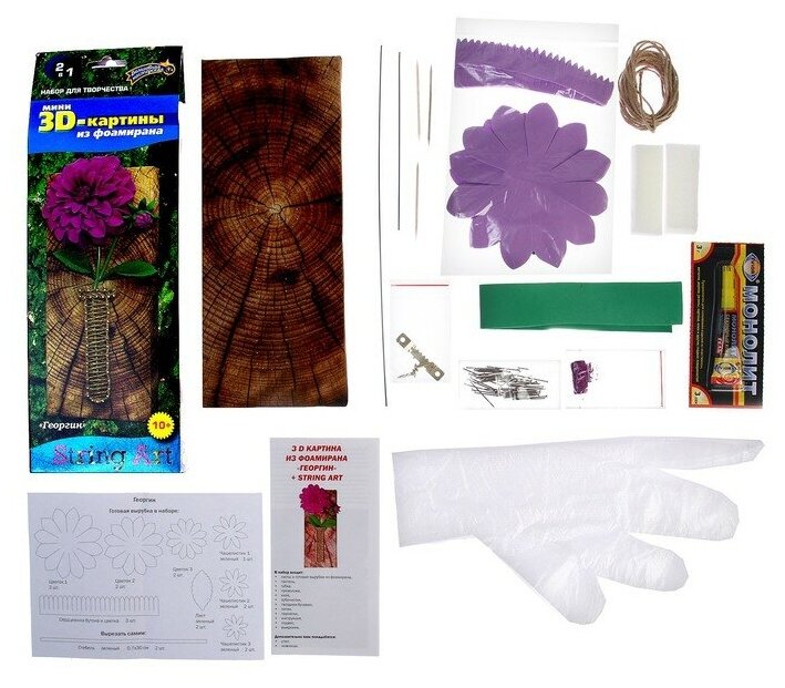 | Состав набора | готовая вырубка из фоамирана, подрамник натянутый на холст, пастель, проволока, губки, выкройка, гвозди, перчатки, клей, шпагат, инструкция |