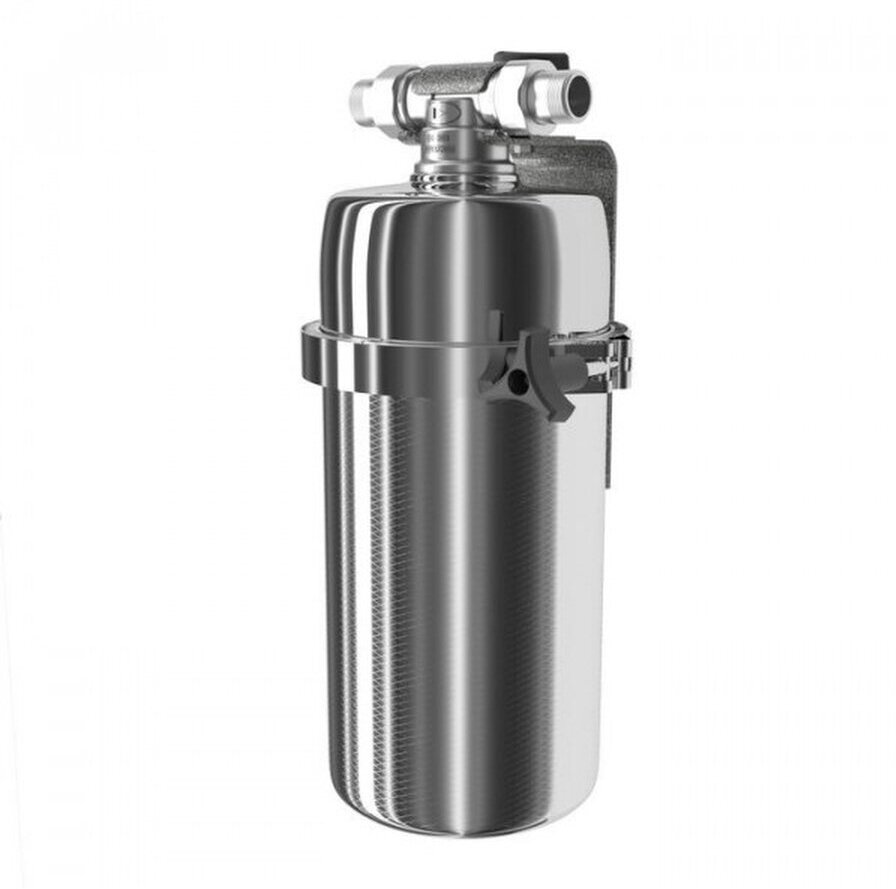 Корпус магистрального фильтра из нержавеющей стали с удобным креплением типа американка . Нижний полукорпус изготовлен из нержавеющей стали марки AISI 316, особенно устойчивой к коррозии и высоким температурам.