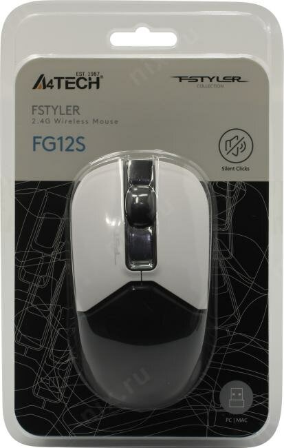 Беспроводная компьютерная мышь A4Tech Fstyler работает от одной батарейки АА. Подходит как для правой, так и для левой руки.