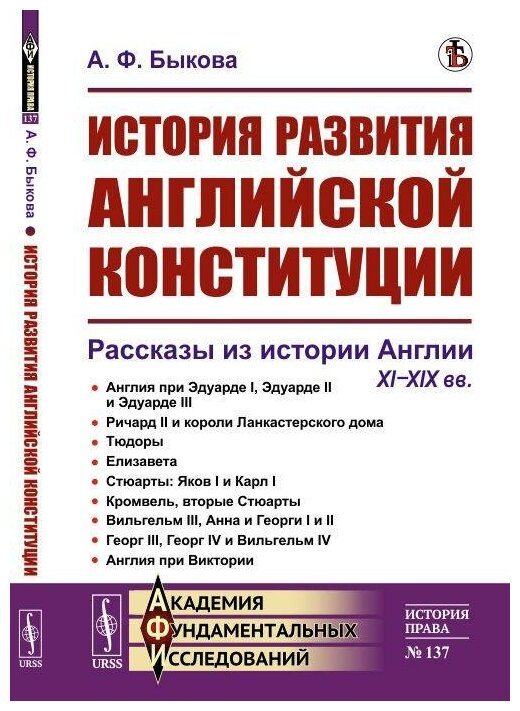 История развития английской конституции Рассказы из истории Англии XI XIX вв (Быкова А. Ф.); Ленанд, 2021