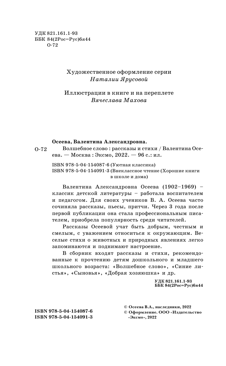 Волшебное слово. Рассказы и стихи (Осеева Валентина Александровна); ООО "Издательство "Эксмо", 2021