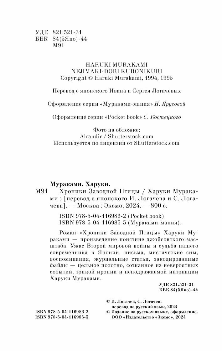 Книга: Хроники Заводной Птицы (Мураками Харуки); ООО "Издательство "Эксмо", 2021