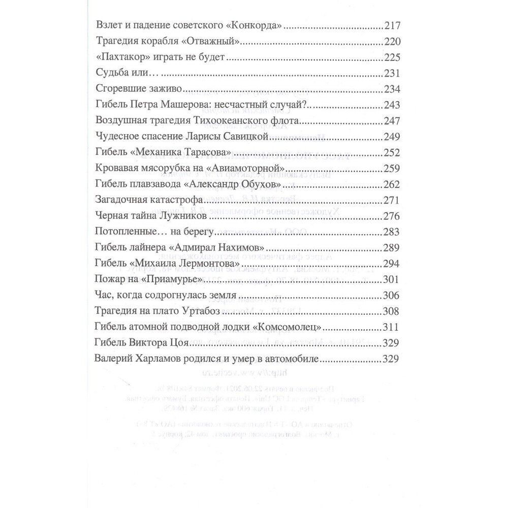 "Спасите наши души! Мы бредим от удушья. Спасите наши души, спешите к нам!.." Страшный в своей пронзительной силе поэтический образ из стихотворения В. Высоцкого лучше всяких описаний выражает суть сенсационной книги, которую вы держите в руках. Это повествования о советских людях, которые задыхались в гибнущих подлодках, в разрушенных землетрясениями городах, горели заживо среди обломков разбившихся самолетов, сознавая, что их гибель останется не известной миру. Потому что вся информация о таких катастрофах, - а их было немало, - тут же получала гриф "Совершенно секретно", дабы не нарушать идиллическую картину образцового социалистического общества. О разрушительных американских торнадо советские СМИ сообщали гораздо больше, чем об Ашхабадском землетрясении 1948 года, которое уничтожило многонаселенный город. Что уж говорить о катастрофических событиях на военных кораблях и подводных лодках, на ракетных полигонах! Сейчас кажется странной эта политика умолчания, ведь самоотверженность и героизм, проявленные во время катастроф, и были достойны стать примером верности самым высоким идеалам человеческих отношений. И потому столь нужны книги, которые приподнимают завесу тайны не только над землетрясениями в Ашхабаде или Спитаке, трагедией "Челюскина" или гибелью подлодки "Комсомолец", но и над теми событиями, что остались не вполне понятны даже их частникам…