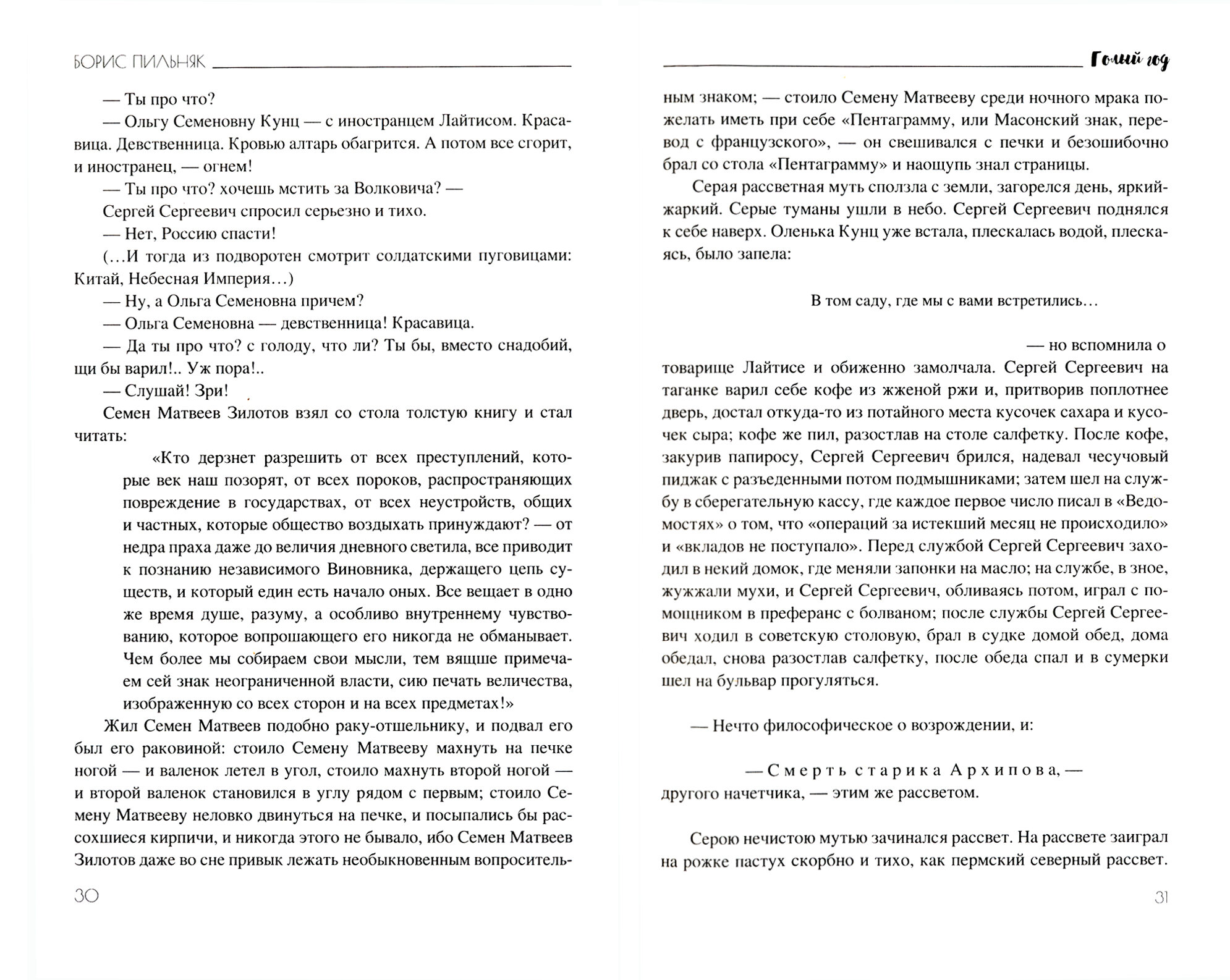 В "Голом годе" люди общаются какими-то наборами случайных слов, потоками мыслей, от автора много описаний окружающей среды, причём такой несовременной, что ли, лексикой. Вообще рваная манера повествования. Встречаются дословно повторяющиеся предложения, абзацы, некоторые герои кочуют из своих историй в чужие. Если за этим скрываются тайные смыслы, или отсылки, слои, задуманные автором, то я лично предпочёл после пары десятков страниц не напрягаться и дальше читать просто роман из эпизодов жизни провинциальных людей в революцию, в конце десятых годов 20го века. Несмотря на то, что автор был уважаем в СССР, мне не показалось, что повесть благосклонно относится к большевикам, не очень приглядно описаны первые годы после революции, герои произведения все какие-то сомнительные.