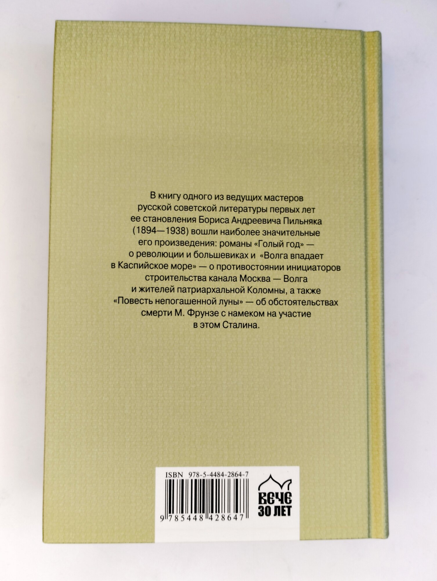 В книгу одного из ведущих мастеров русской советской литературы первых лет ее становления Бориса Андреевича Пильняка (1894-1938) вошли наиболее значительные его произведения: романы "Голый год" - о революции и большевиках и "Волга впадает в Каспийское море" - о противостоянии инициаторов строительства канала Москва - Волга и жителей патриархальной Коломны, а также "Повесть непогашенной луны" - об обстоятельствах смерти М. Фрунзе с намеком на участие в этом Сталина.