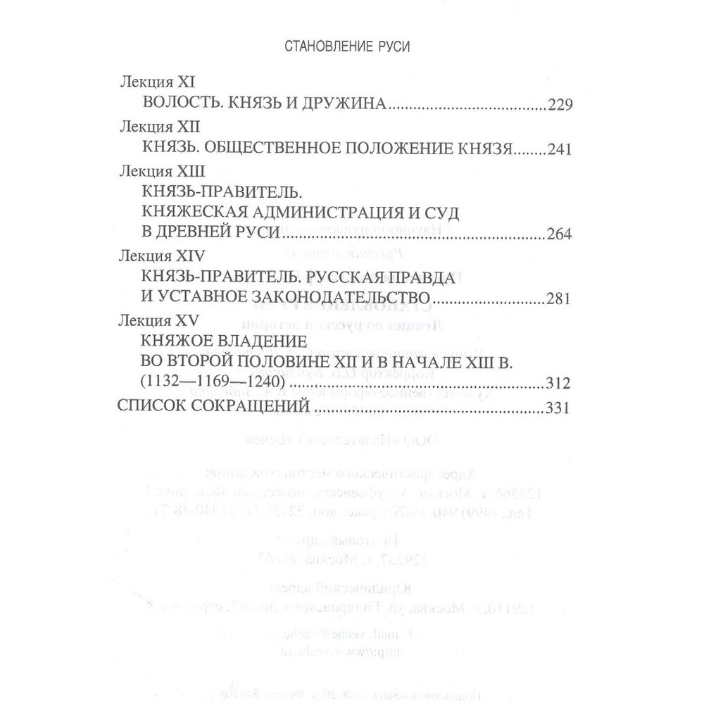 А.Е. Пресняков — яркий русский и советский историк (1870—1929) — относится к числу тех ученых, труды которых по-прежнему актуальны и, пожалуй, обязательны к прочтению всеми, кто углубленно интересуется историей России. Пятнадцать лекций по русской истории рисуют перед читателями картину становления Древнерусского государства, устройства княжеской власти, взаимоотношений различных социальных слоев… Автор не игнорирует, а, напротив, обращает внимание на проблемные темы, которые до сих пор не до конца прояснены исторической наукой.