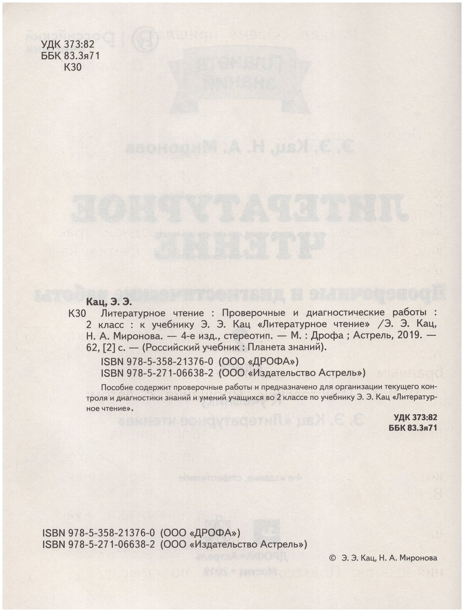 Литературное чтение. 2 класс. Проверочные и диагностические работы. (Кац Евгения Марковна); ВЕНТАНА-ГРАФ, 2019